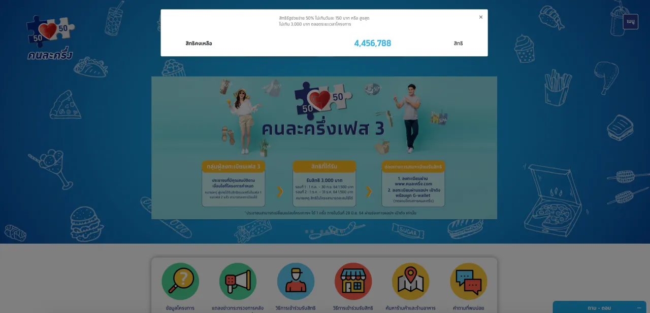 อัปเดตโครงการคนละครึ่ง สำหรับการลงทะเบียนคนละครึ่งเฟส 3 ผ่านไปวันแรก 14 มิ.ย. เปิดลงทะเบียนร้านค้าใหม่ โครงการคนละครึ่งเฟส 3 ตั้งแต่วันที่ 14 มิ.ย. ที่ผ่านมา ประชาชนสนใจลงทะเบียนกว่า 24 ล้านคน เหลือสิทธิว่างเพียง 7. กระแสความสนใจของประชาชน คนละครึ่ง เฟส 3 ลุ้นเปิดลงทะเบียนวันไหน? 64 เวลา 6 โมงเช้า (เ… โครงการคนละครึ่งเฟส 3 ลงทะเบียนยังไง ต้องกดใหม่ไหม ใครได้บ้าง วันนี้เราสรุปคำตอบมาให้แล้ว. คนละครึ่ง เฟส 3 ลงทะเบียนแล้วจะใช้สิทธิอย่างไร ได้เงินเท่าไร เปลี่ยนเบอร์โทรศัพท์ได้ไหม รวบรวมคำถามเกี่ยวกับโครงการคนละ. เกาะติด คนละครึ่งเฟส3 หลังเปิดให้ลงทะเบียนคนละครึ่งเฟส3 วันแรก 14 ม.ย.64 ผ่านแอปพลิเคชันเป๋าตัง และเว็บไซต์ www.คนละครึ่ง.com ล่าสุด ณ วันที่ 16 มิ.ย.64. เช็คไทม์ไลน์ คนละครึ่งเฟส 3 เงินเข้าวันไหนบ้าง พร้อมตรวจสอบวิธี ลงทะเบียนคนละครึ่งเฟส 3 สำหรับกลุ่มที่ยังไม่เคยได้สิทธิ 3,000 บาท โครงการคนละครึ่งเฟส 3 ลงทะเบียนวันไหน (twitter) พรีเมียร์ลีก ตุรกีบอล ตรวจหวย หวยออก ไทยรัฐ กองสลาก com เลขเด็ดงวดนี้ ทีมชาติไทย ดิว. หลังจาก เมื่อวันที่ (14 มิ.ย.64) ที่ผ่านมา กระทรวงการคลังได้เปิดให้ประชาชนลงทะเบียนโครงการคนละครึ่งเฟส 3 แล้ว จำนวน 31 ล้านสิทธิ โดยจะเปิดให้. คลังเปิดลงทะเบียน คนละครึ่ง เฟส 3 เพิ่ม 16 ล้านสิทธิ์ เผยมาตรการทั้งหมดครอบคลุม 51 ล้านคน ใช้งบเงินกู้กว่า 2.25 แสนล้านบาท นางสาวกุลยา ตันติเตมิท. เช็คสิทธิ คนละครึ่งเฟส 3 เปิดให้ประชาชนลงทะเบียนถึงเมื่อไหร รู้ผลวันไหน ได้รับวงเงินในการซื้อสิ้นค้าบริการจำนวนเท่าไหร่ สามารถใช้จ่าย.